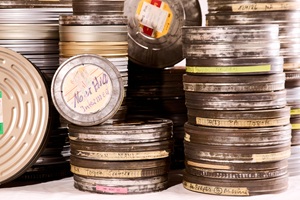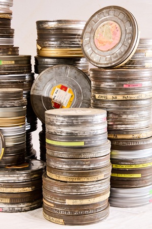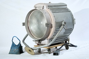 Mächtige 5kW- und 10kW-Cremer-Leuchten aus den frühen 1960er-Jahren inklusive original Stativen, formschöne Strand-Verfolger sowie eine grosse Menge an Filmrollen aus der "guten alten Zeit"...:)