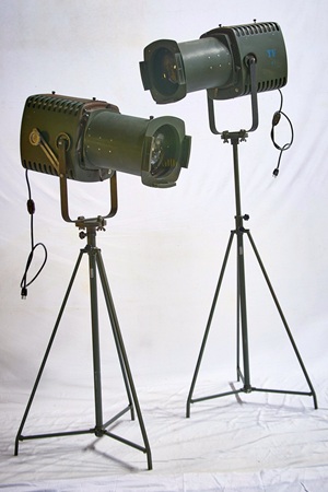 Mächtige 5kW- und 10kW-Cremer-Leuchten aus den frühen 1960er-Jahren inklusive original Stativen, formschöne Strand-Verfolger sowie eine grosse Menge an Filmrollen aus der "guten alten Zeit"...:)